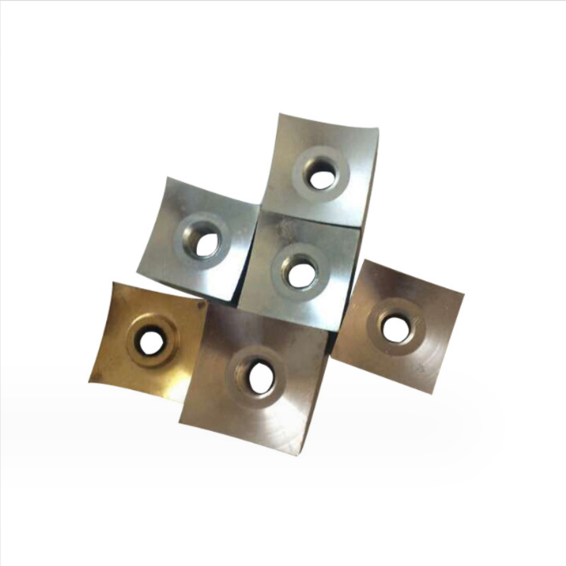 Lames de broyeur à arbre unique Elles servent à traiter des matériaux comme le bois, le métal, les déchets, le caoutchouc et le plastique. Leur surface de coupe est circulaire (en forme de R). La lame possède un trou central convexe ou plat et comporte généralement quatre dents de coupe.