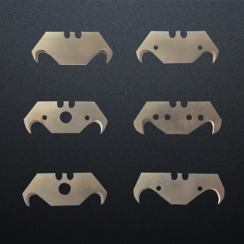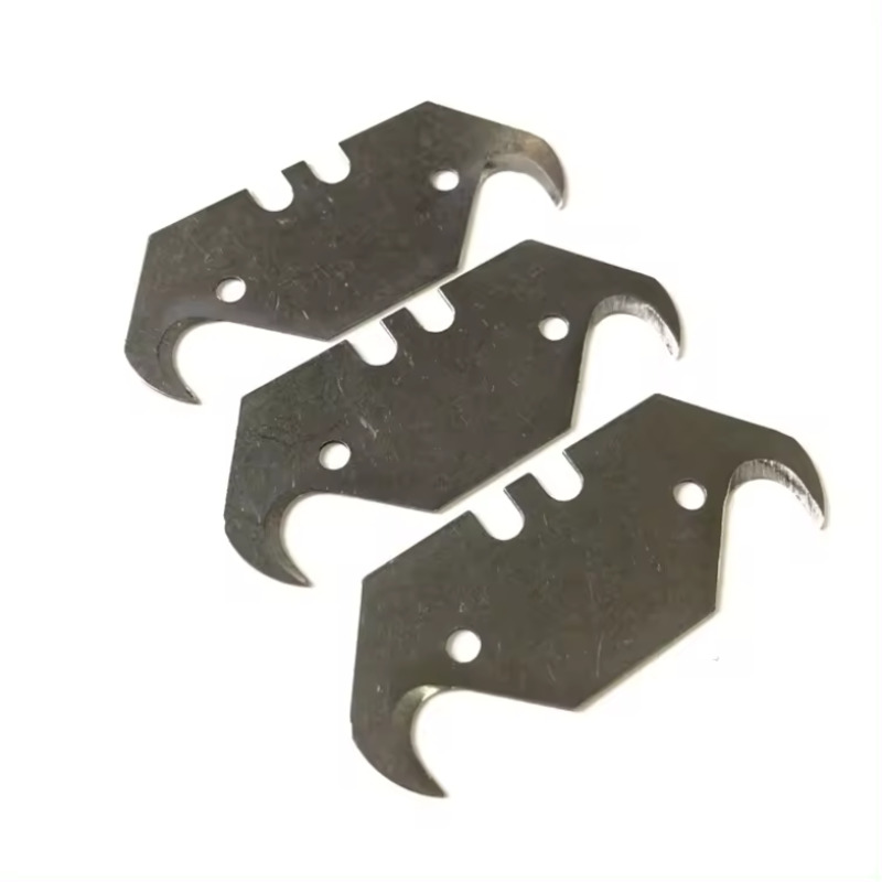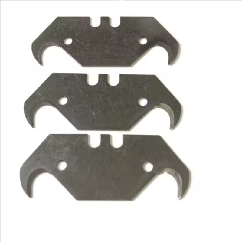 Lames de corne de taureau Ces lames sont couramment utilisées dans les outils de coupe industriels pour des secteurs tels que l'emballage plastique, le caoutchouc, le papier, le textile, le film plastique et l'emballage alimentaire. Elles doivent leur nom à leurs extrémités incurvées, qui rappellent des cornes de taureau. Ces lames sont généralement installées sur des machines d'emballage, des machines à fabriquer des sacs et des machines de découpe pour la découpe à chaud ou à froid, ou la découpe à longueur, de films, de sacs plastiques et de papier.